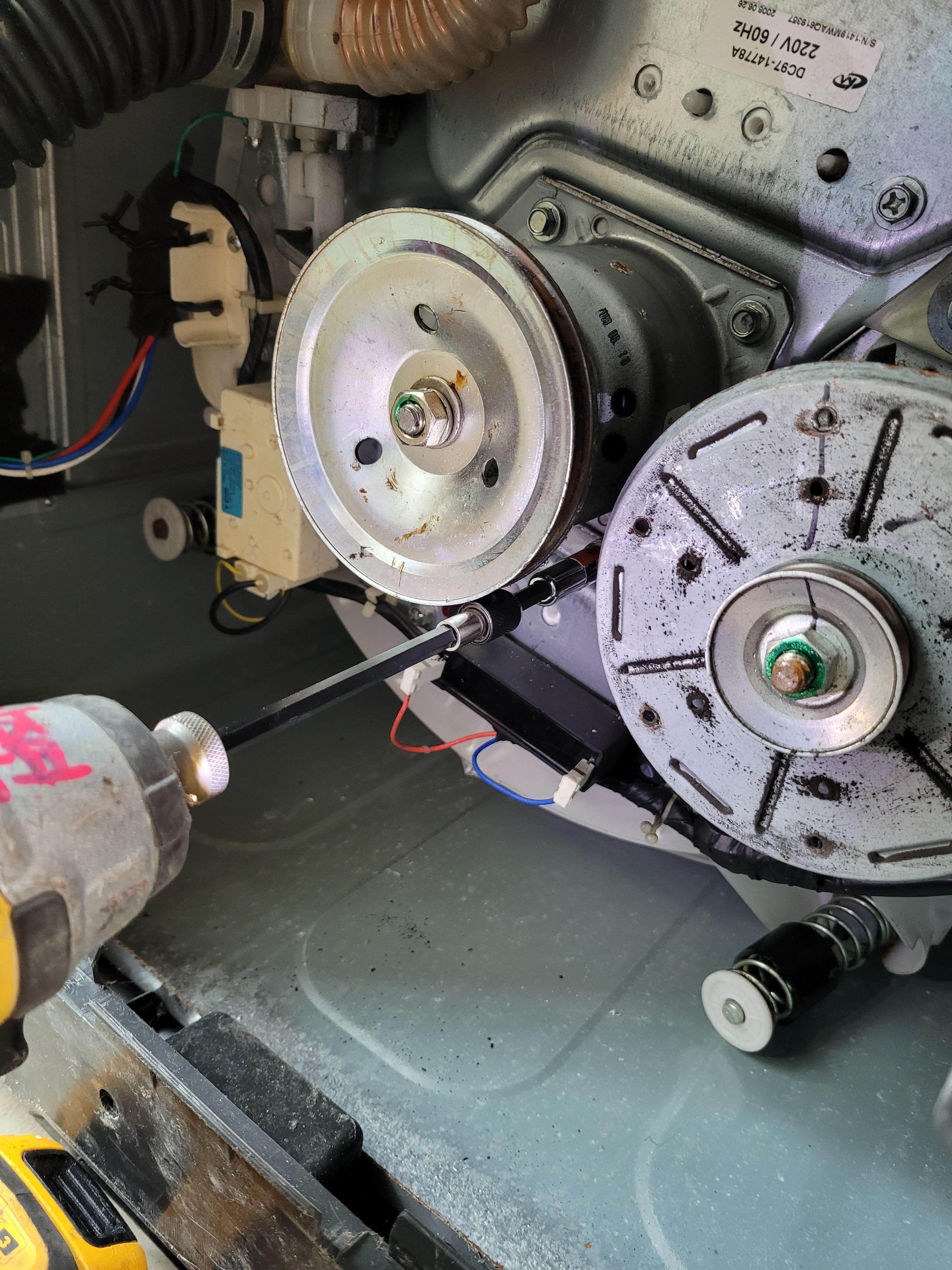 삼성거는 클러치 고정 볼트 구멍만 있어서 벨트사용에 따라 늘어난 것을 팽팽하게 조절할 수 없네요.