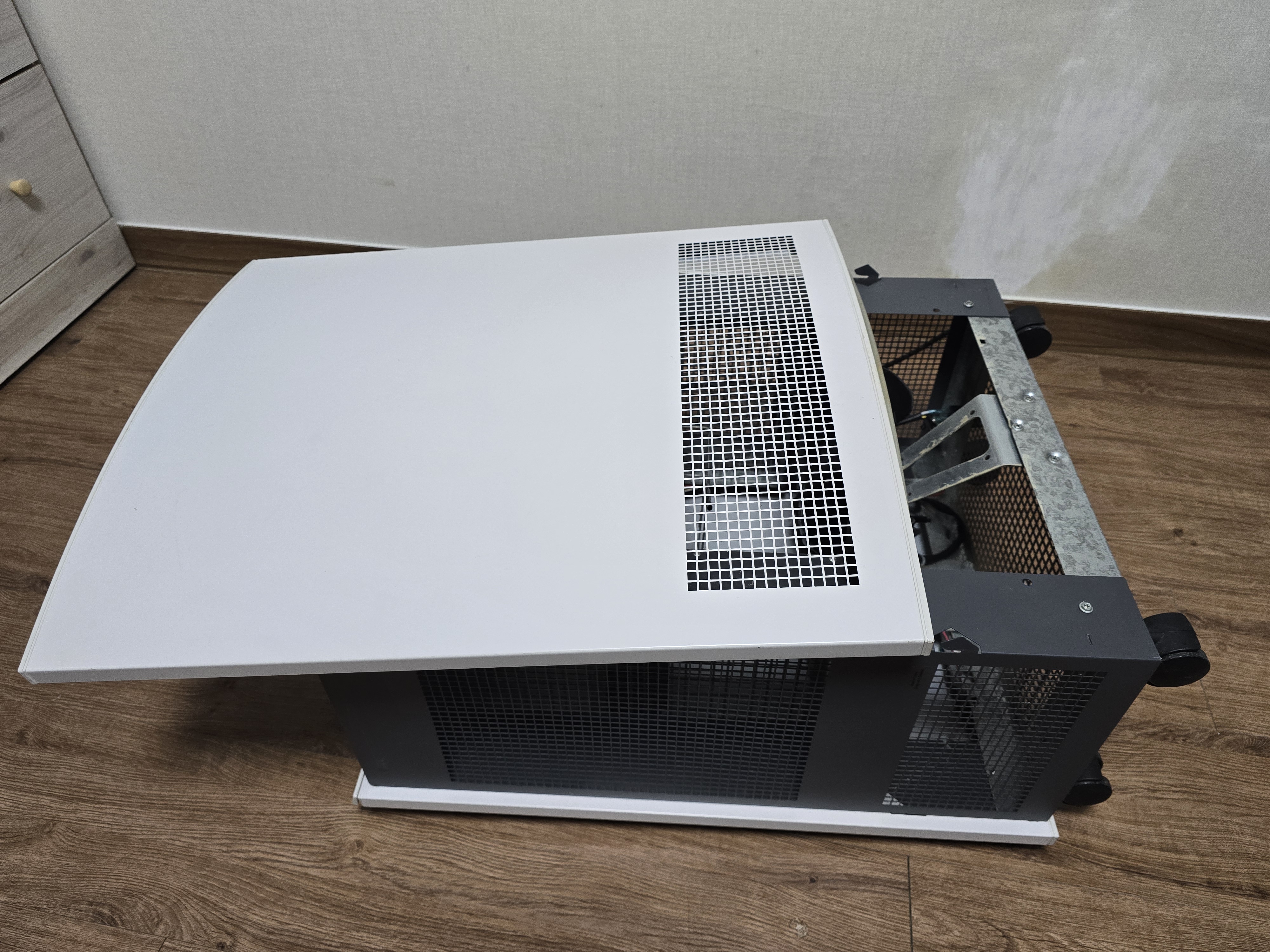 아주 먼지가 쌓여있네. 에어콘, 세탁기도 속을 보면 이럴꺼에요. 제품내부가 이러면 필터만 교체해서는 정상적인 기능과 성능이 나오지않을 꺼에요.