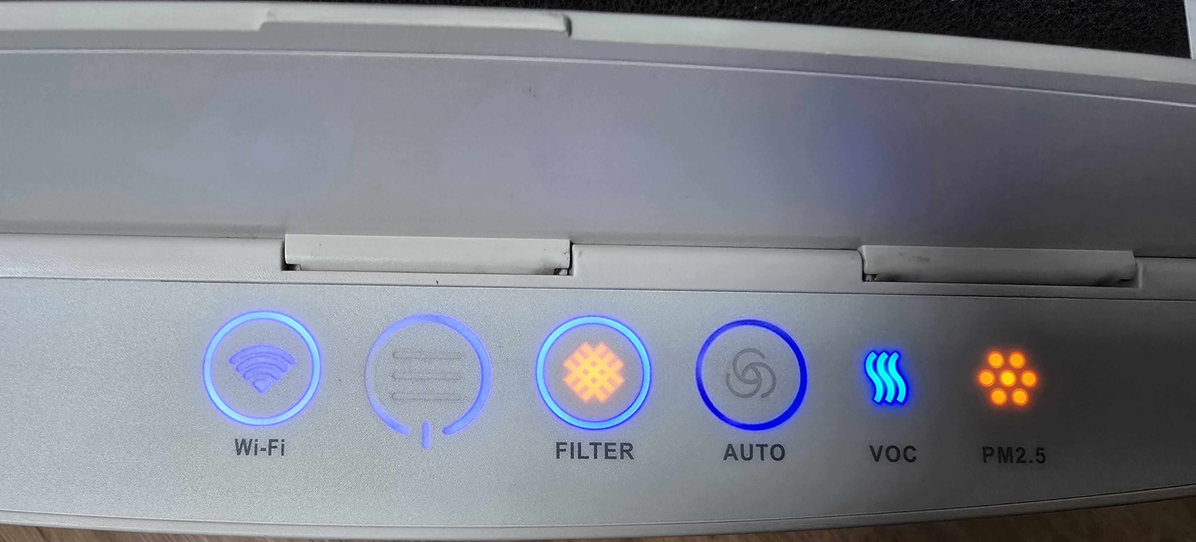 PM2.5 먼지 불이 들어왔네요. 방안에 먼지가 많은 건지 센서가 민감한지 모르겠네요.