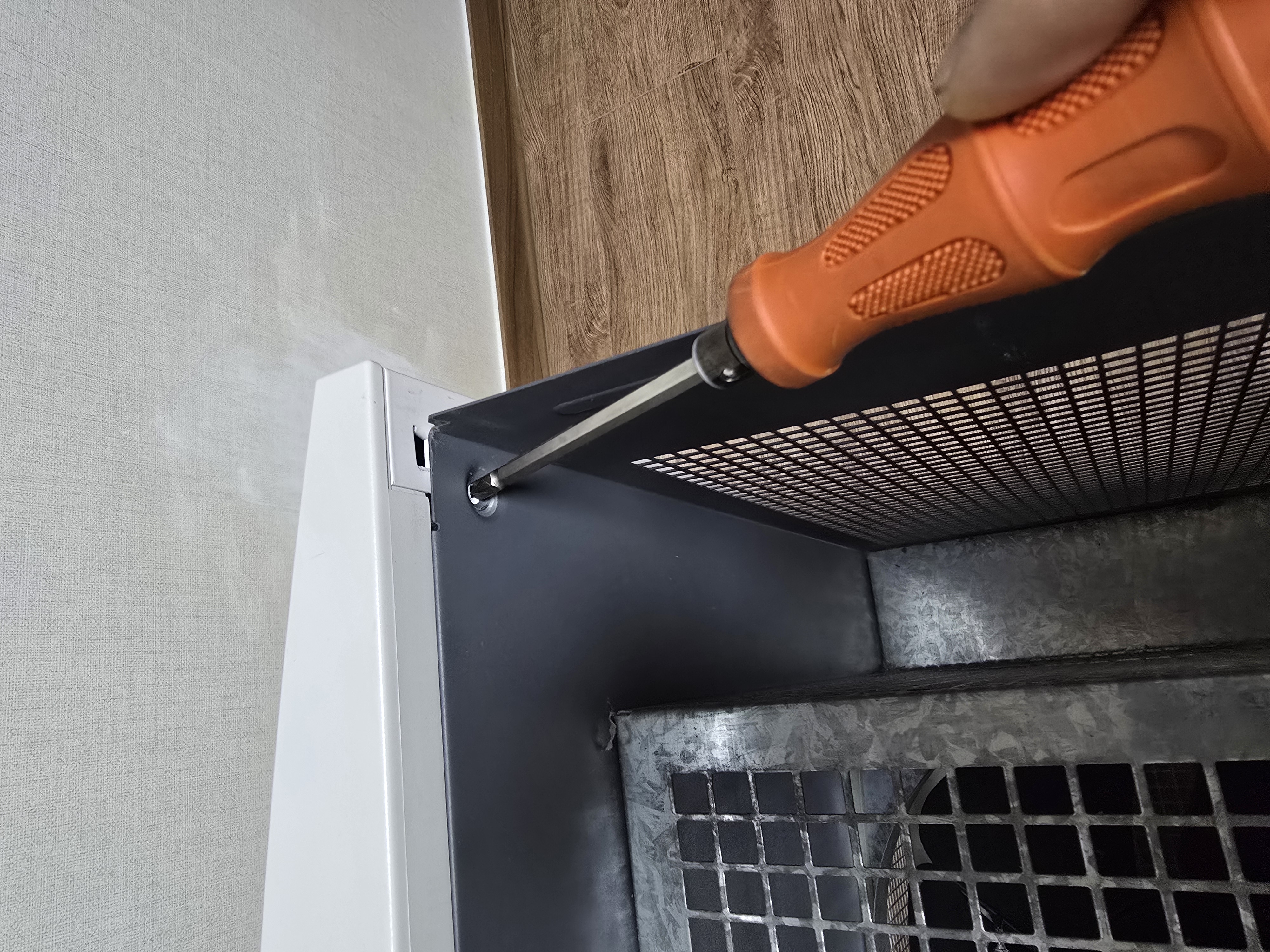 앞뒷면 커버 윗쪽에 고정된 피스를 푼다.