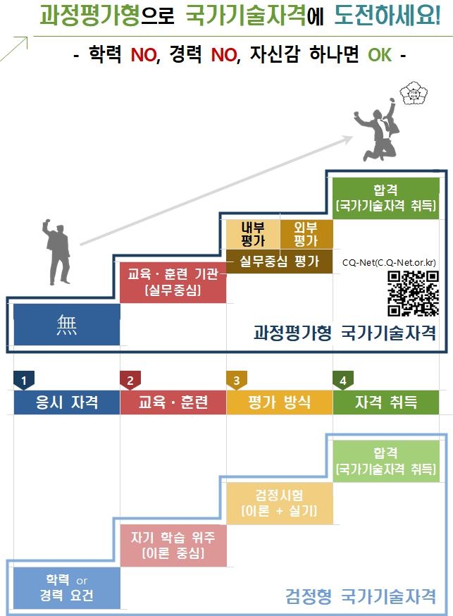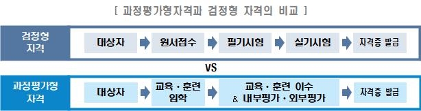 그러면 기존 검정형 자격과 과정 평가형 자격의 차이점이 무엇일까요?