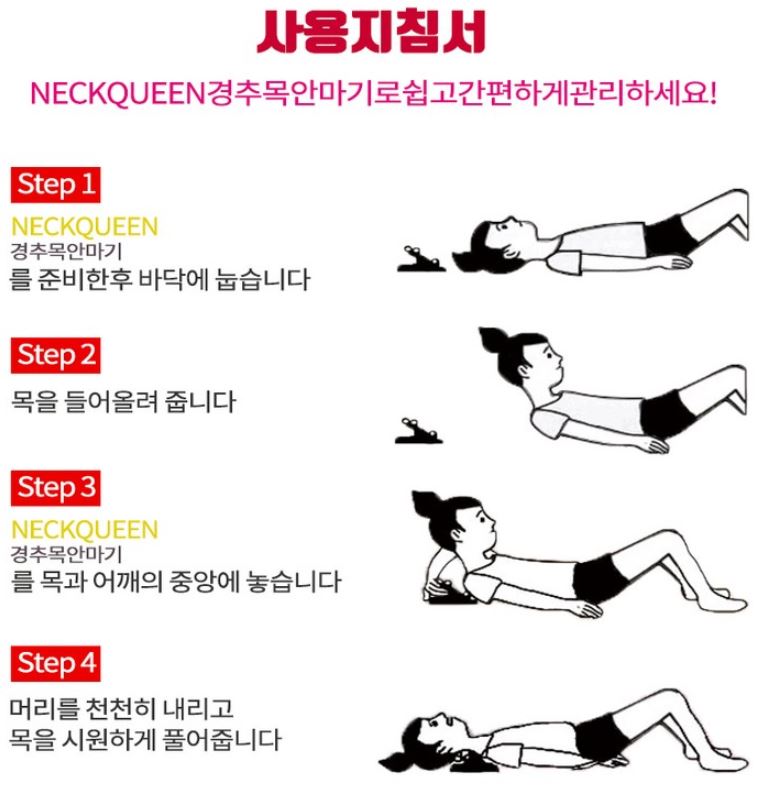 거북목이든지 경추부 즉 목등뼈 뭉치게 되면 신경을 눌러서 두통과 어지럼증까지 생깁니다. 한의원, 병원 통증의학과에 가지않더라도 넥퀸, 목펴지넥 목마사지기 하나면 집에서 간단하게 5분이면 목뭉침을 해결할 수 있습니다. 개인적으로 교통사고와 컴퓨터 작업으로 거북목되어서 통증을 해결하기 위해 찾게 되었습니다.
