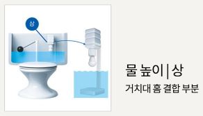 먼저 변기물을 내린 후, 물탱크의 바닥에서 물높이, 수위(水位)를 확인한다.