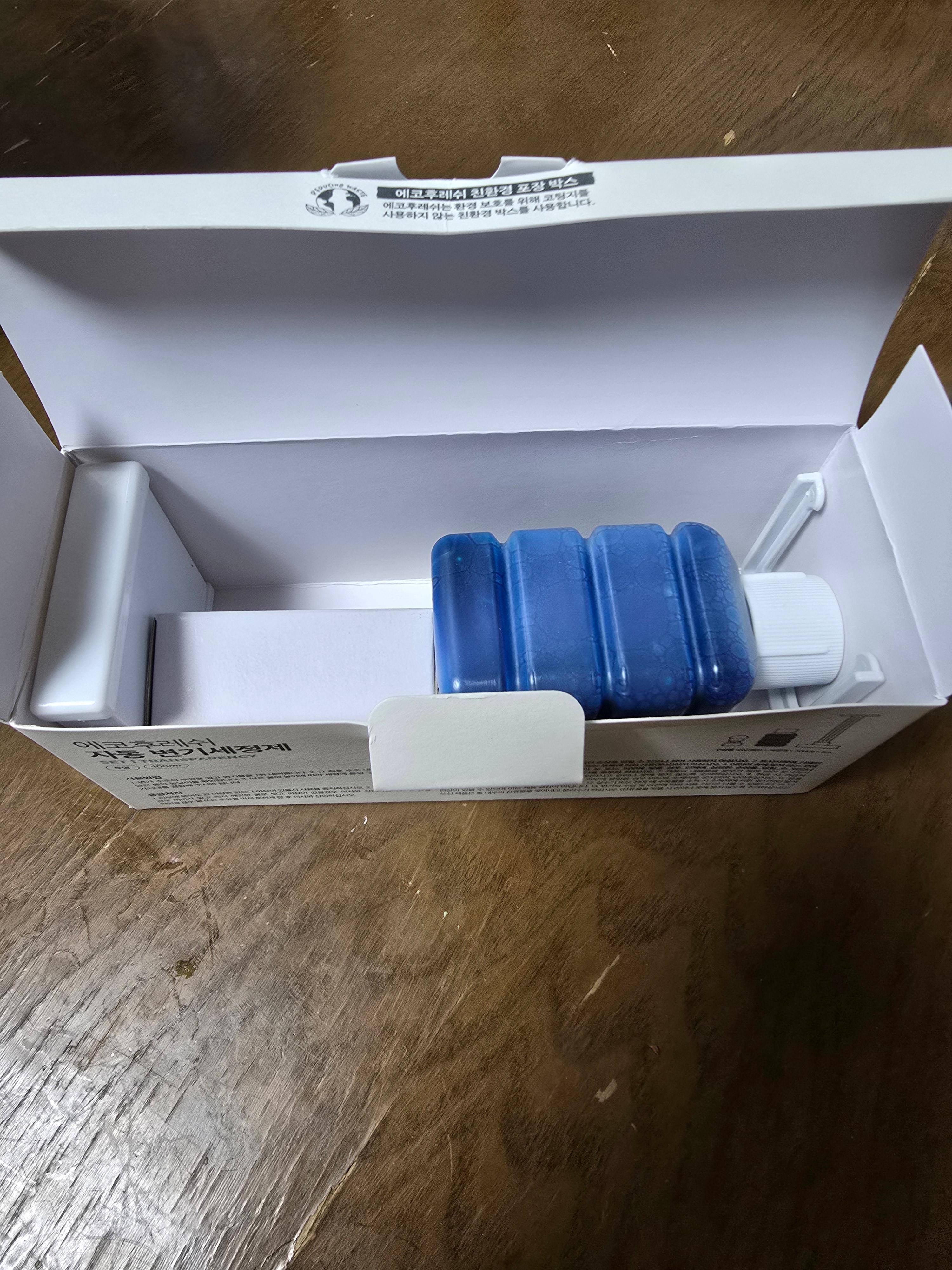 에코후레쉬 자동변기세정제와 거치대입니다.
