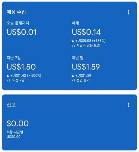그리고 티스토리 관리자 모드에서 수익이 달러로 표시돼었습니다.