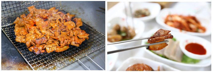 연탄불에서 구워낸 고기는 겉은 바삭하고 속은 촉촉해 달면서 불맛이 거득한 고기의 풍미가 입안 가득 퍼지는 느낌을 받을 수 있습니다. EBS 한국기행 백반여행에서 병영불고기거리 연탄불고기 내용입니다.