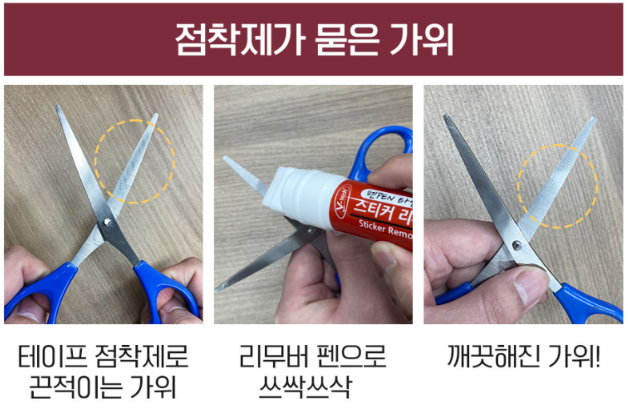 가위, 칼 등에 남은 스티커나 접착제 흔적
