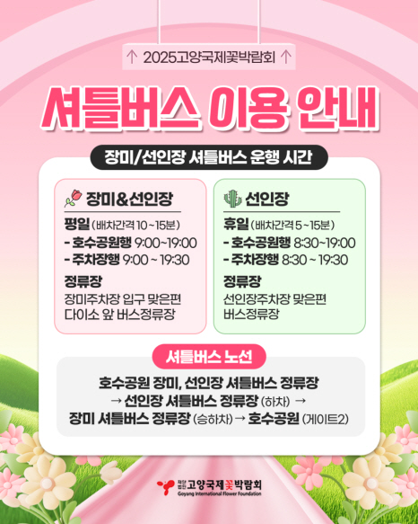 꽃박람회 기간동안 셔틀버스를 운행합니다. 하차지점 잘 확인하고 이용하시면 됩니다.
