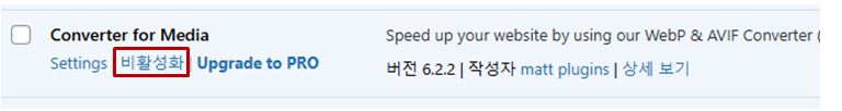 - 플러그인을 일시적으로 비활성화하거나