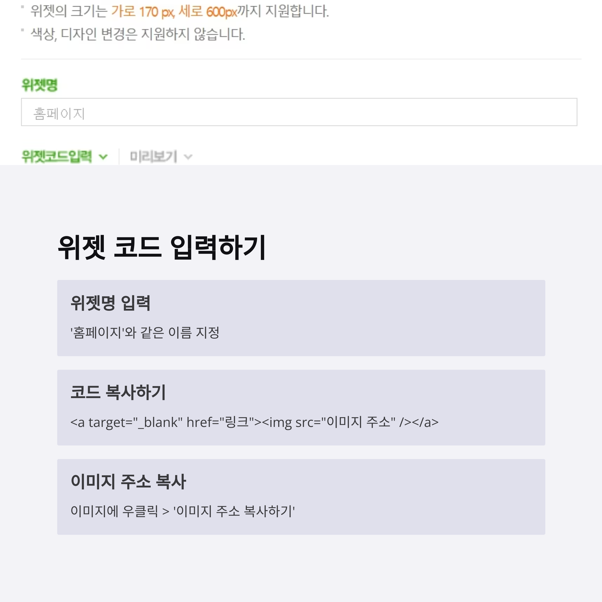 ‘위젯배너 사진링크’는 위젯 이미지에 오른쪽 마우스를 눌러서 ‘이미지 주소 복사하기’를