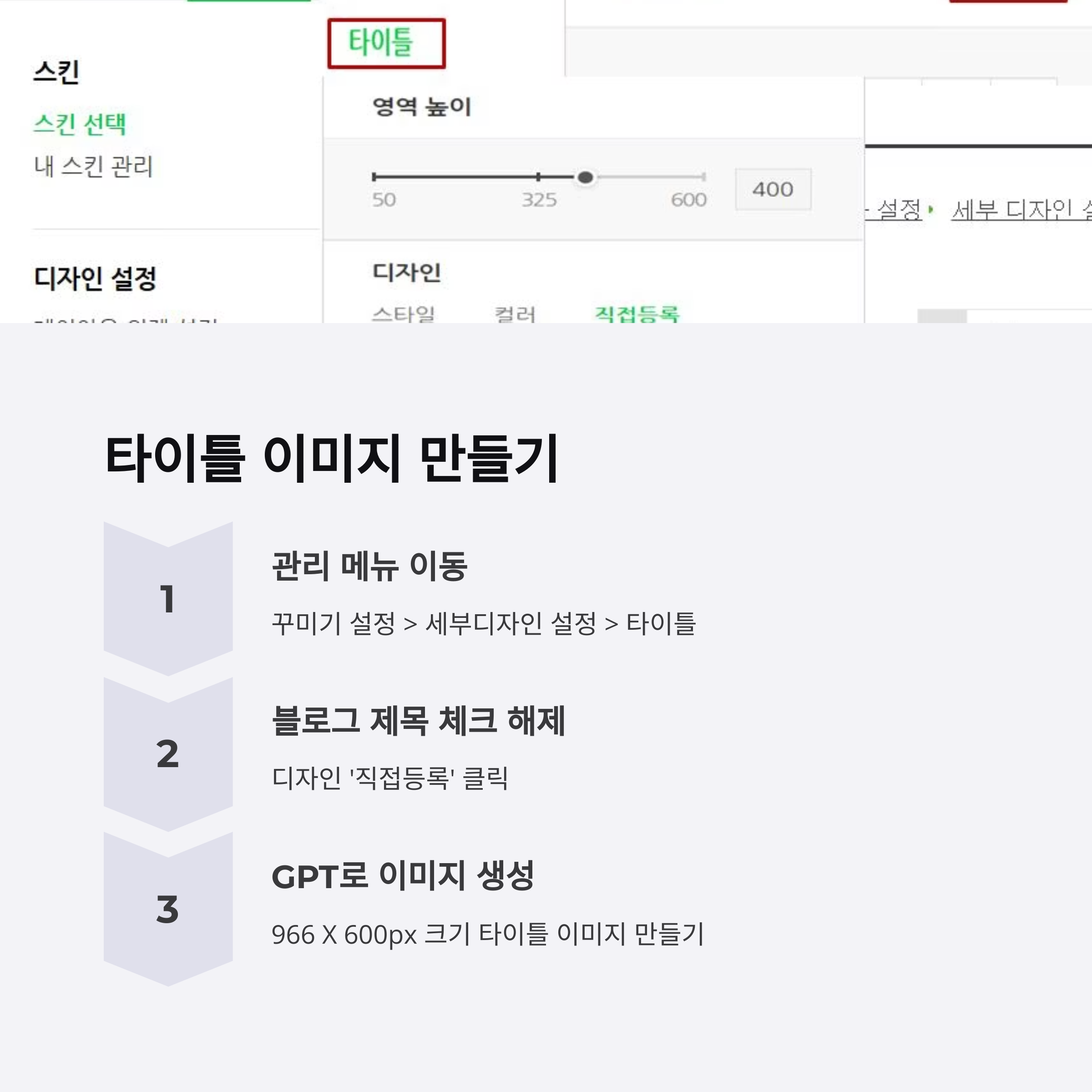 GPT에게 "966x600 크기로 타이틀 이미지 만들어줘. 키워드는 ○○○" 요청 가능