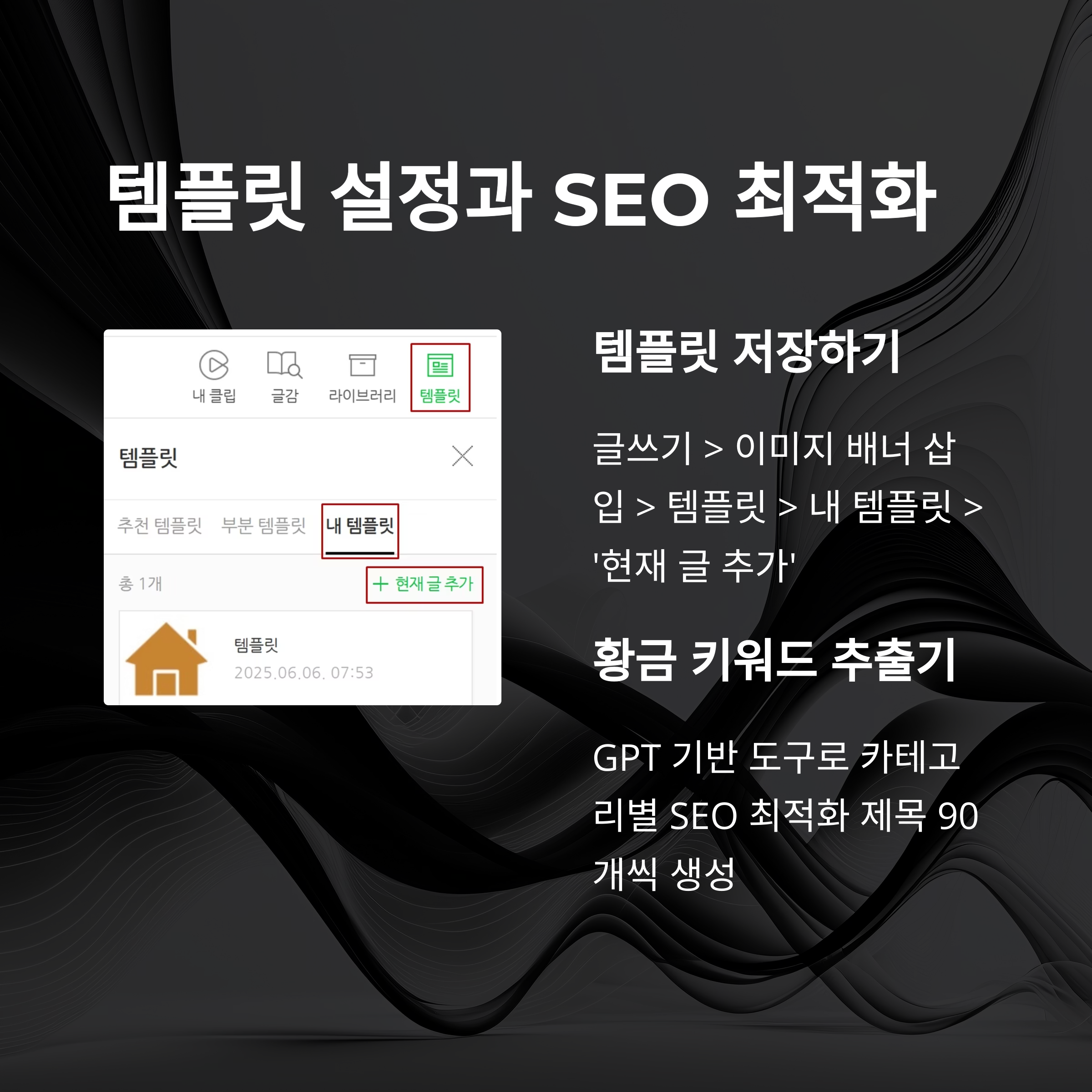 - 자주 쓰는 구성은 "내 템플릿"에 저장 후 반복 사용