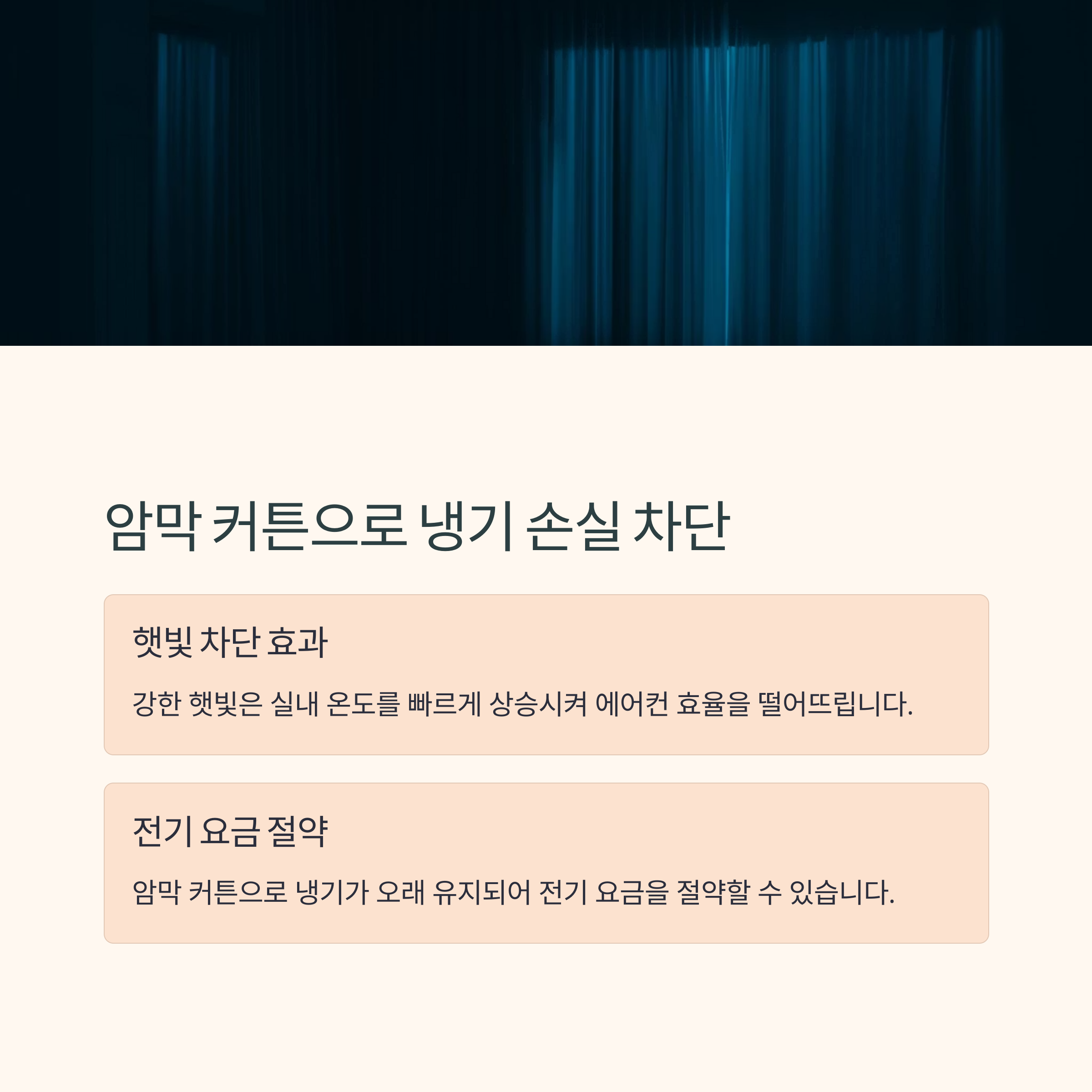 암막 커튼을 활용하면 냉기가 오래 유지되고 전기 요금도 절약할 수 있어요.