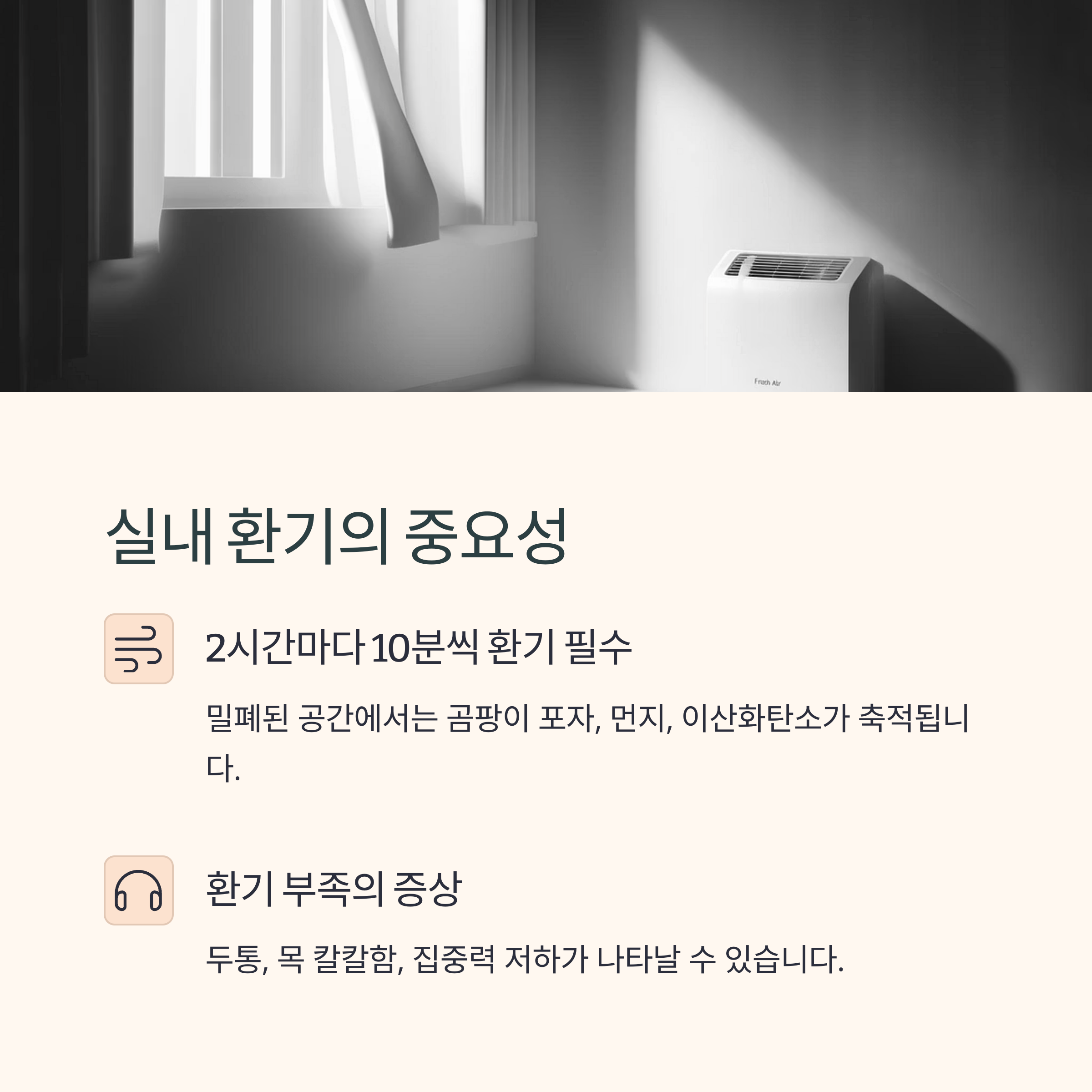 1. 실내 환기, 2시간마다 10분씩은 기본입니다!