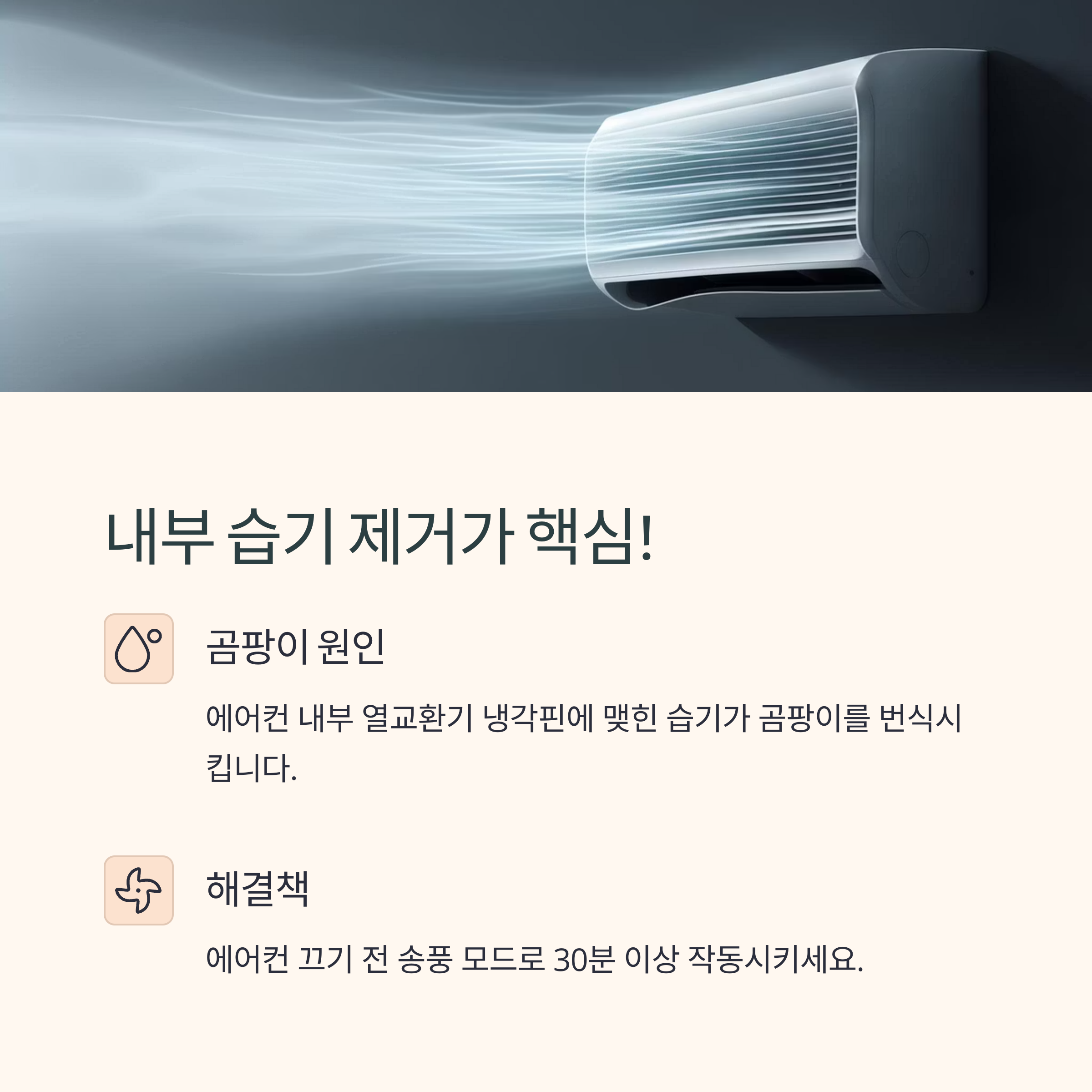- 없다면 에어컨 끄기 전 송풍 모드로 30분 이상 작동시키기