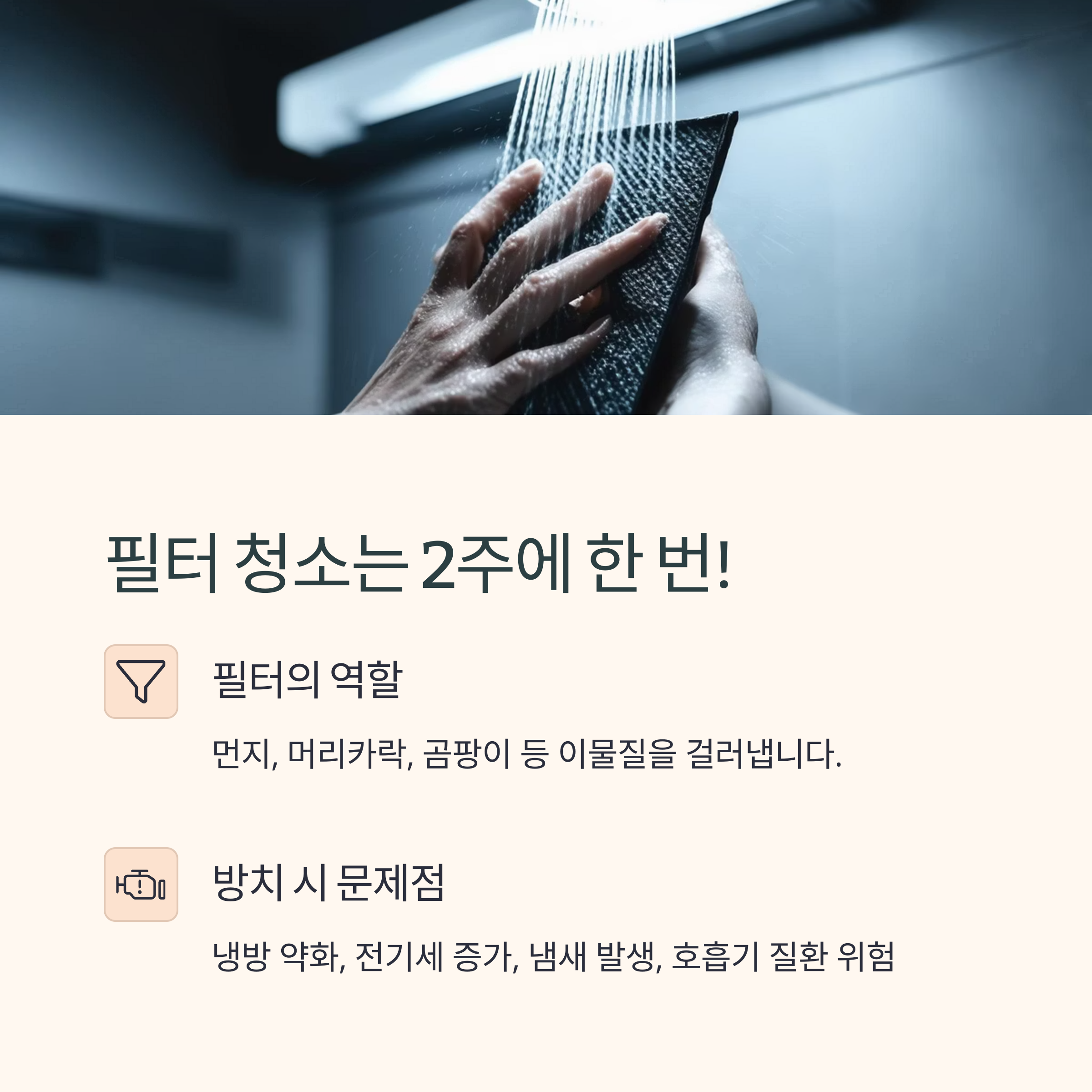 - 주기적인 필터 청소는 냉방 효율 향상, 전기 절약에 탁월합니다.