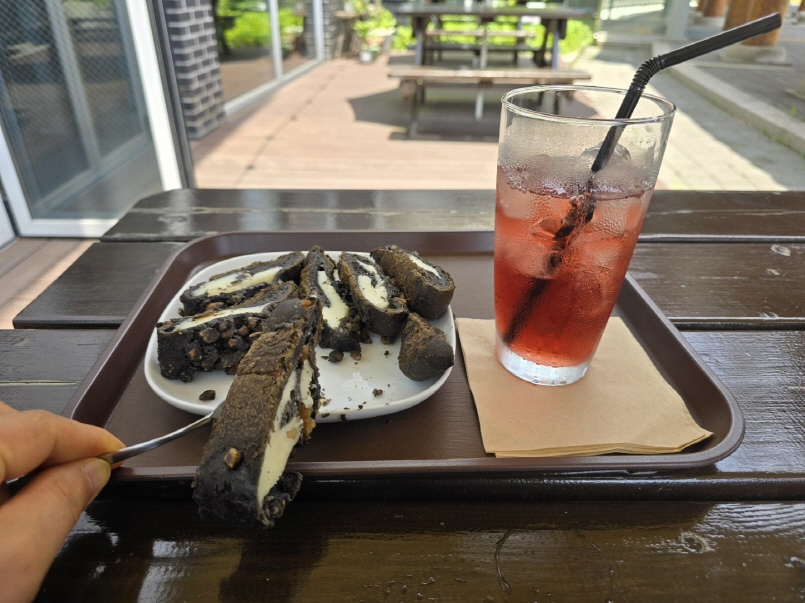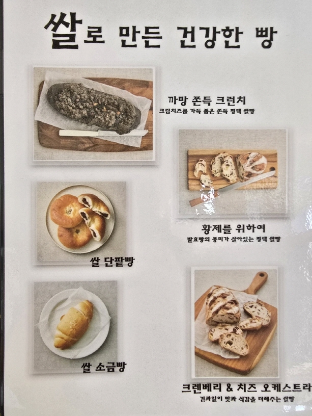메뉴로는 커피, 음료수, 쌀로 만든 빵 이고 가격은 일반 카페보다 착한 5천원대입니다.