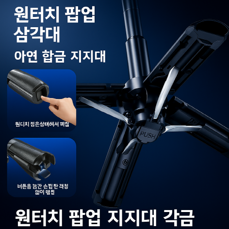 셀카봉 손잡이 바닥에 'Push' 누르고 삼각대를 벌립니다.