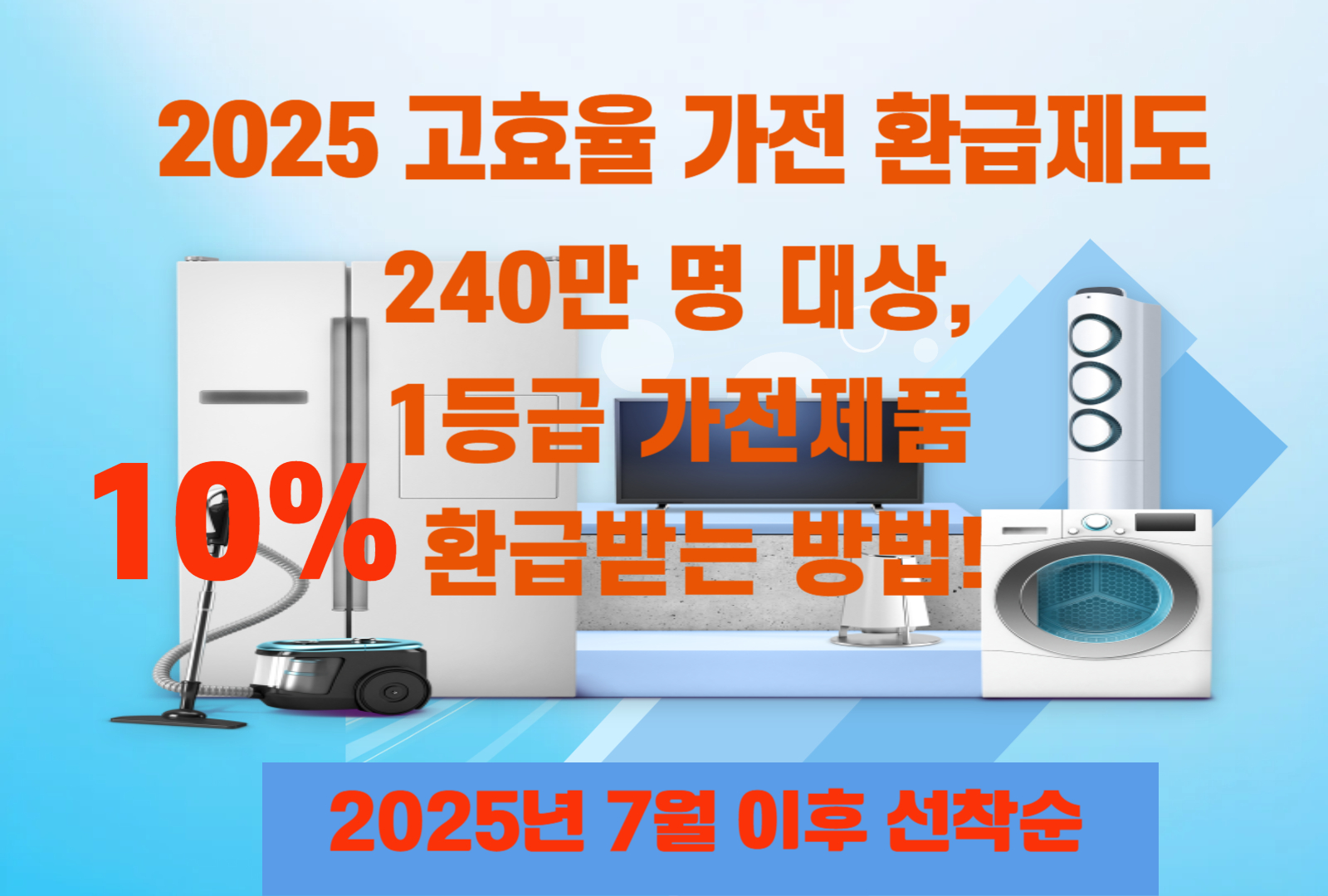 2025년 7월부터는 소득과 관계없이 전 국민이 참여 가능한 고효율 가전 환급제도가 추가로 시행됩니다.