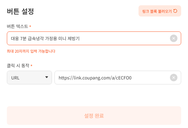 [클릭시 동작] '쿠팡파트너스나 제휴마켓' 링크주소를 붙여넣기하고요.