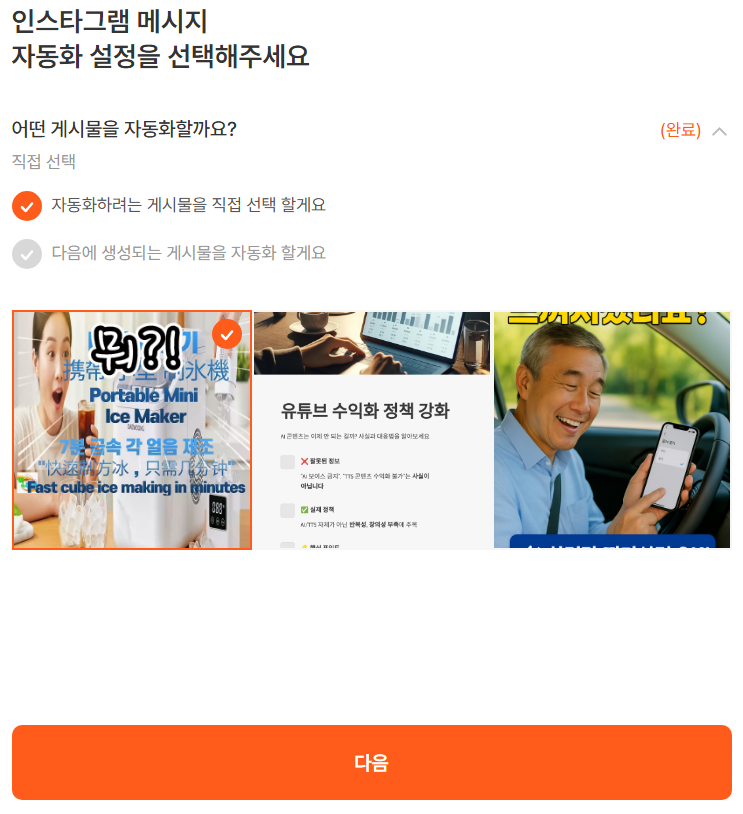 메세지 보내기 자동화하려는 게시물을 선택합니다.