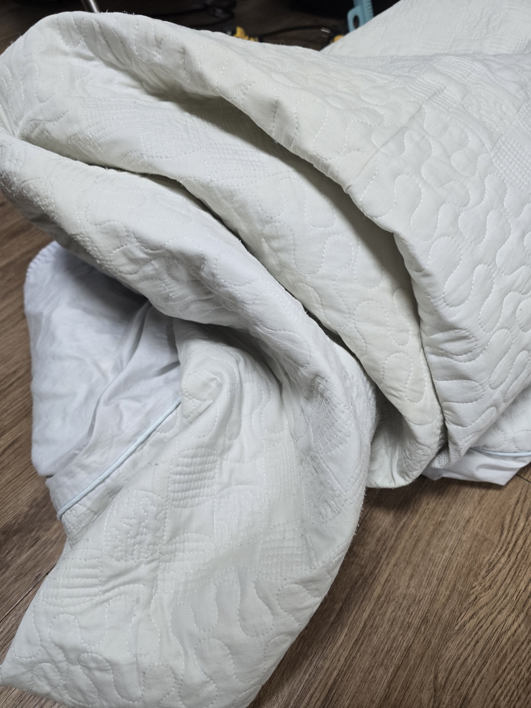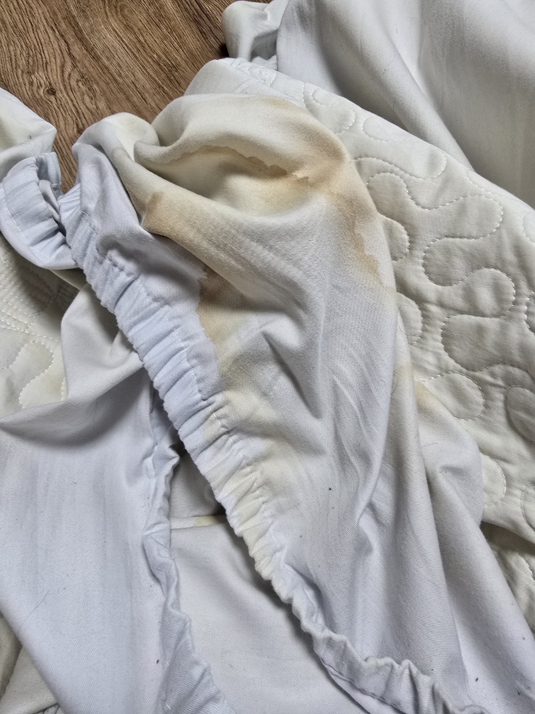 침대포를 건조한 후 모습인데요. 진하고 누른 얼룩은 빠졌어요.