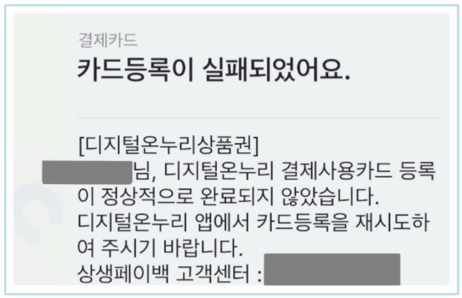 “상생페이백 카드 등록 실패 메시지가 뜨나요?