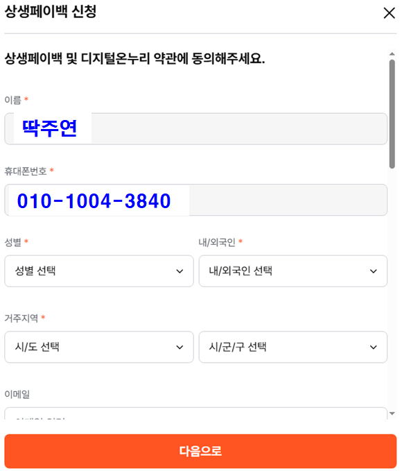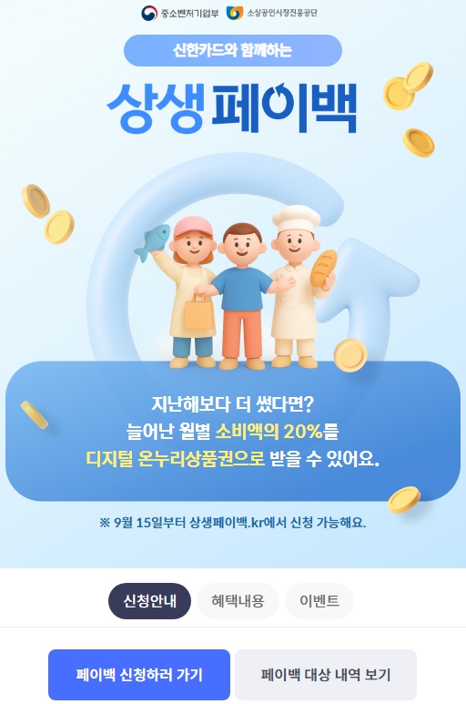 며칠 전, 9월 15일 상생페이백에 신청시간이 열렸습니다.
