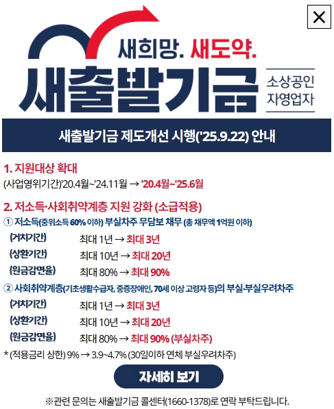 2025년 9월 22일부로 새출발기금 제도개선 사항이 시행됩니다.