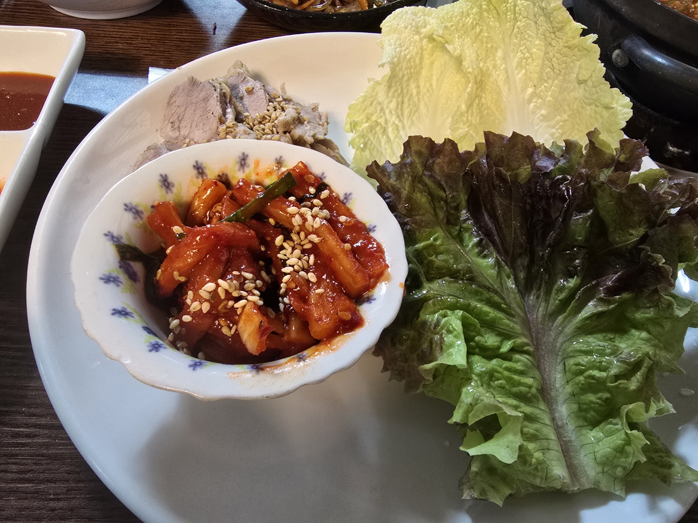 수육은 적당히 삶아져 부드럽고 지방감이 강하지 않아 부담 없이 즐길 수 있습니다.