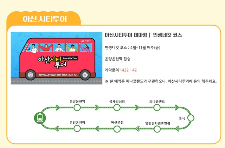 온양온천역 주변 온천 체험 → 온양온천시장 먹거리 탐방 → 곡교천 은행나무길 산책 후 귀가