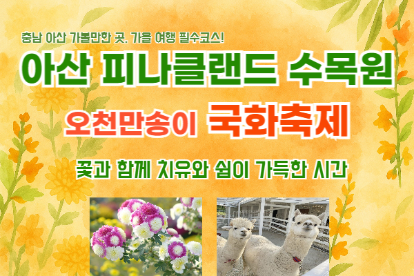 수도권 근교로 접근성이 좋은 2025 아산 피나클랜드 수목을 국화꽃축제를 알려드립니다.