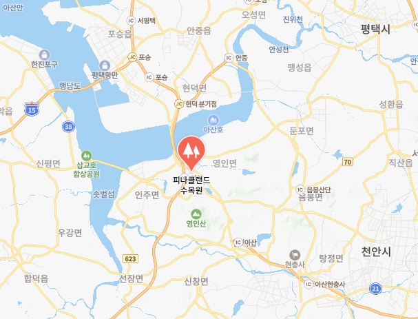 아산 피나클랜드는 수도권에서 서해안 고속도로-> 익산-평택 고속도로 -> 영인IC 로 나오면 됩니다.