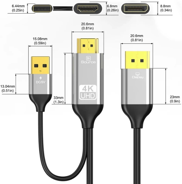 반대로 " HDMI to DP " 변환 케이블 같은 경우는 추가로 직류 5V 전원공급이 필요합니다.