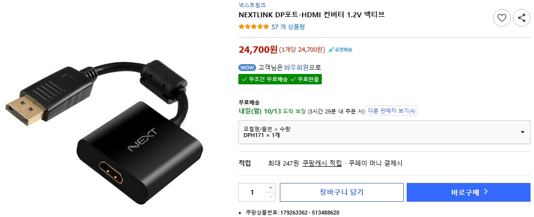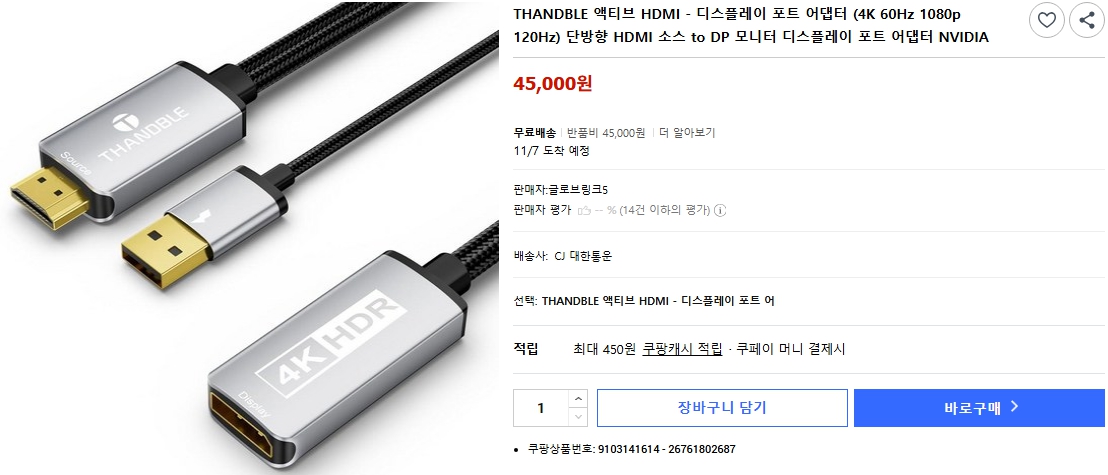 - 변환 시(예: DP → HDMI) 케이블 방향에 따라 작동 제한