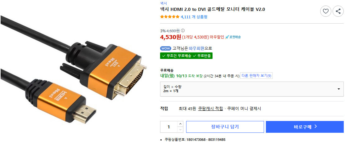 HDMI 변환용(HDMI ↔ DVI 케이블)