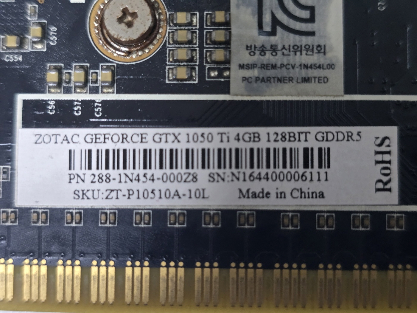 ![]() Zotac GTX1050 Ti 뒷면 라벨 |