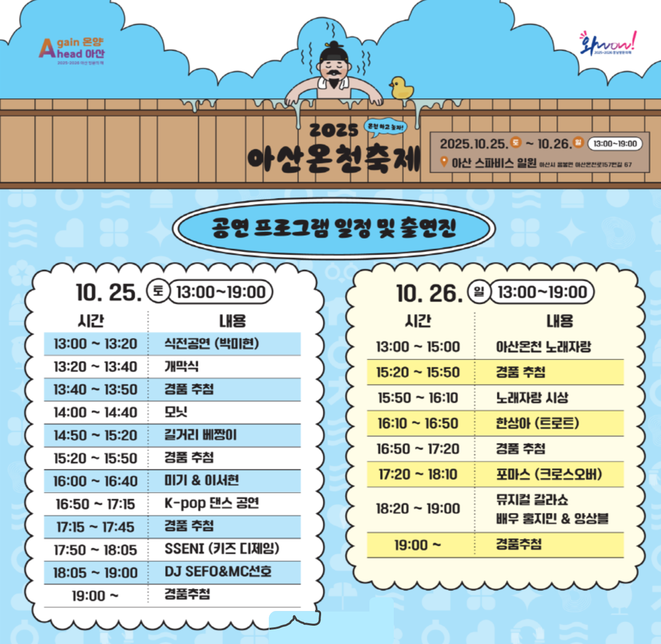 아산 가볼만한 곳 핫플! 2025 아산온천축제(10/25–26) 현장 후기와 스파비스 온천·스파 힐링 원데이 코스, 교통·주차·준비물 꿀팁까지 한 번에 정리했습니다. 공연·버블쇼·플리마켓·둘레길 정보와 요금/할인 체크 등 .