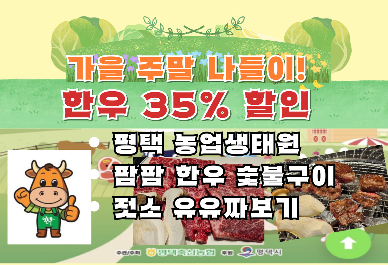 평택가볼만한곳 찾는다면 평택 농업생태원 ‘팜팜페스티벌 2025’! 한우 35% 할인, 전유진 공연, 아이 체험존(우유짜기·회전목마·네컷), 숯불구이존과 로컬마켓, 선착순 한우 국거리 꿀팁까지 현장 후기로 정리했습니다.