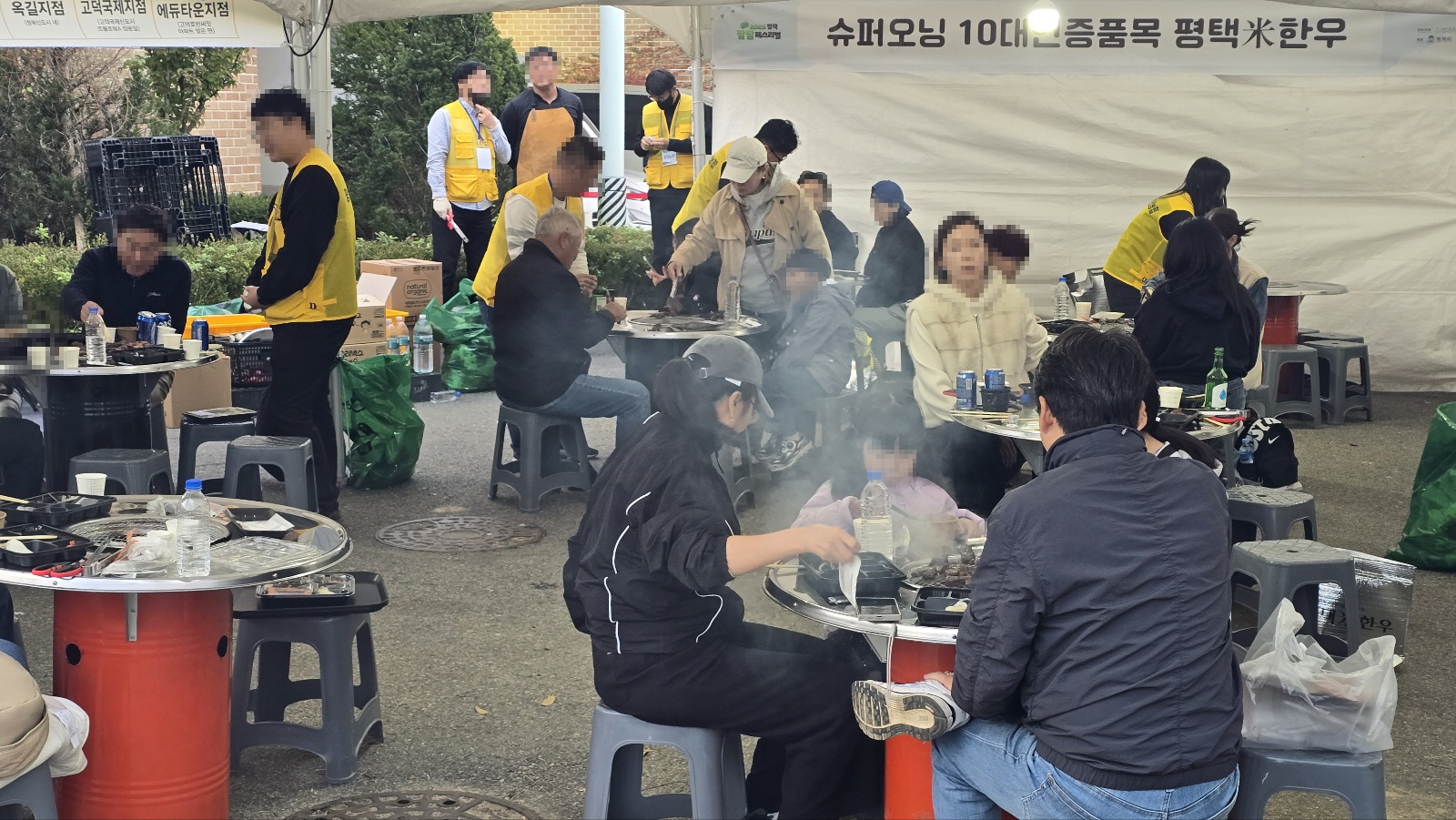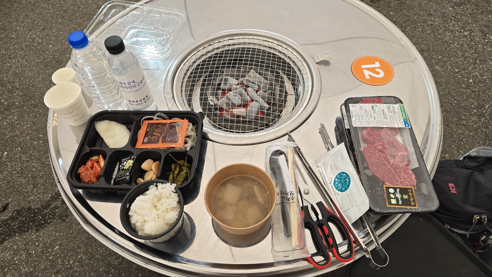 한우 판매부스에서 고기를 사서 '숯불구이 장소'로 가서 상차림비와 추가 밥과 국 등을 계산하고 입장하면 됩니다.