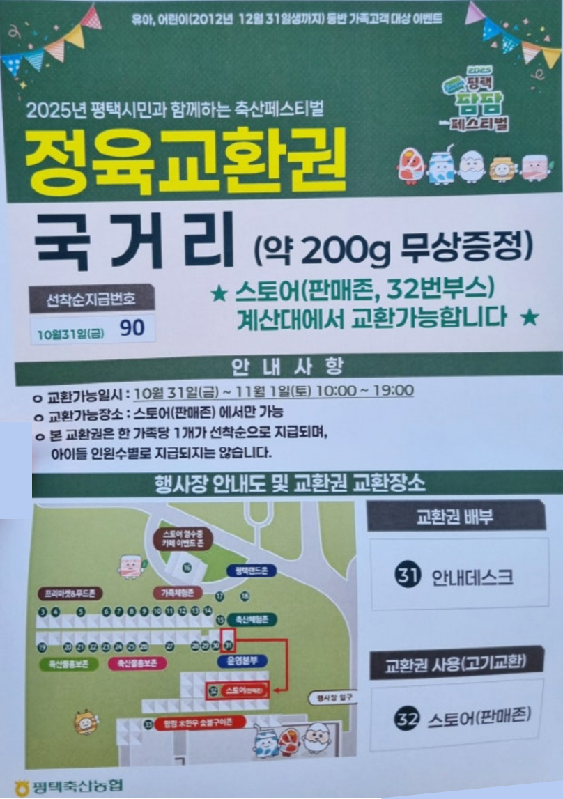 저 같은 경우, 오후 4시즘 갔는데 카카오톡에 '평택축산농협' 채널을 추가해서 줄서면 돼었고요.