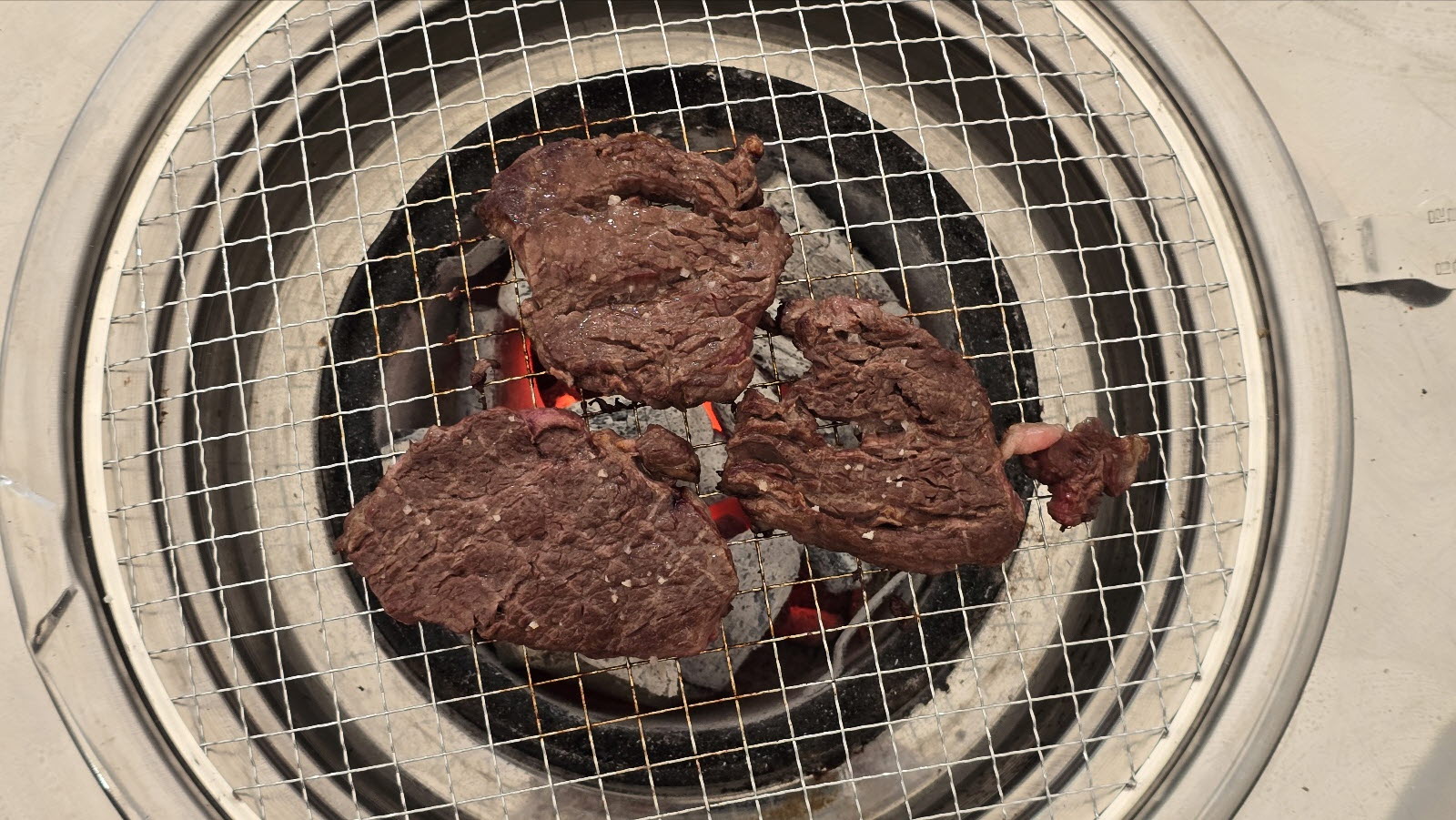 숯불에 한우 안심을 올리고![]() |