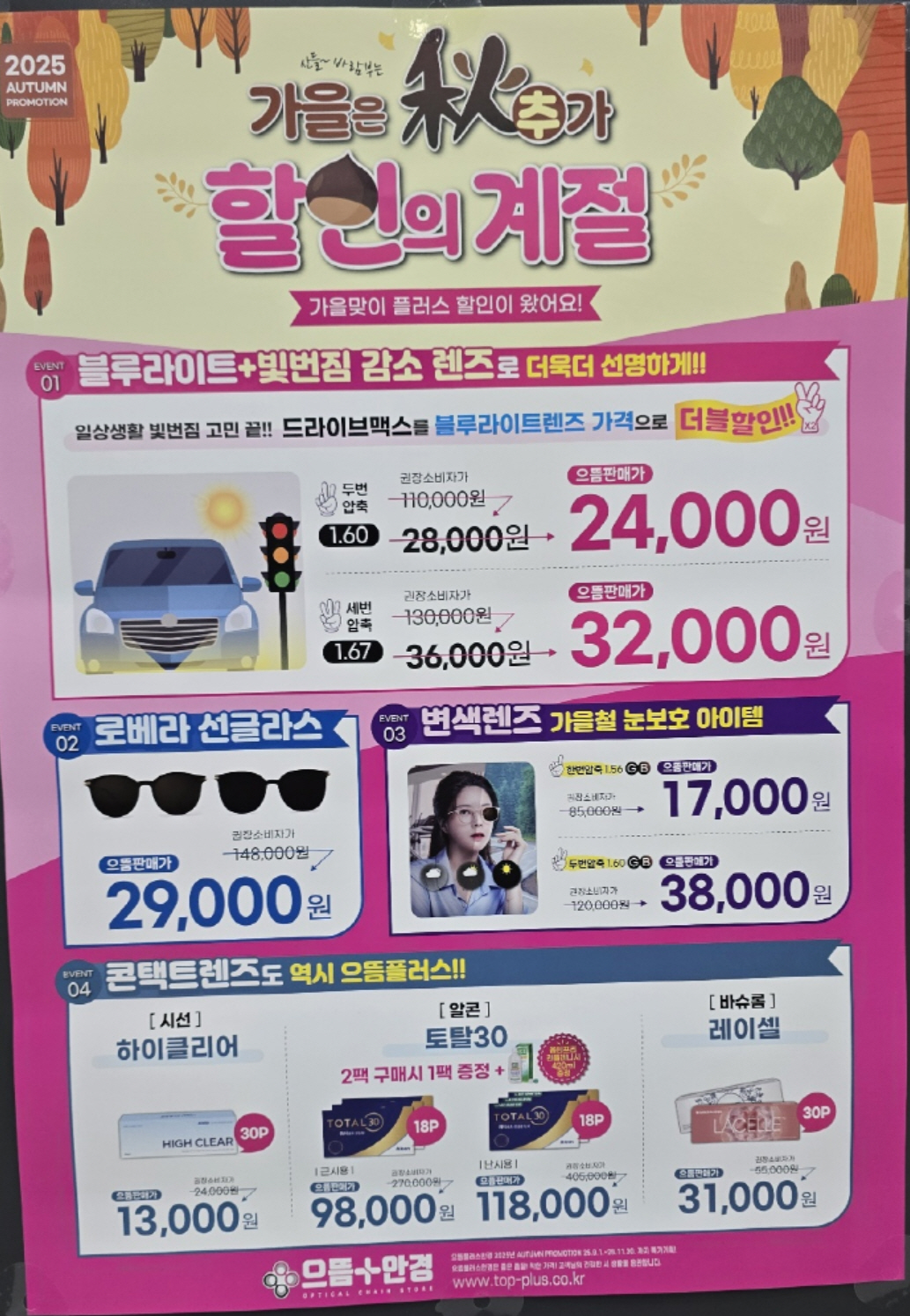- 이벤트/프로모션 확인: “이달의 가격” 항목이 공식 홈페이지에 있으며 렌즈·콘택트렌즈 할인 정보도 함께 확인 가능해요.