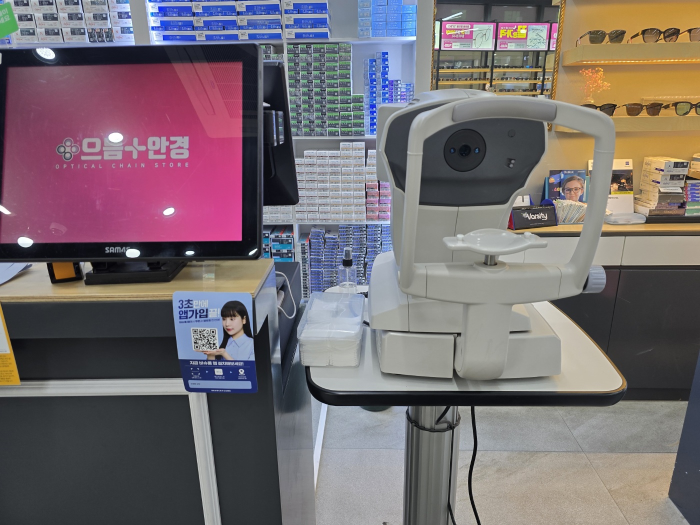 으뜸플러스 안경점 매장에는 시력측정기가 2대가 있어서 간편하게 시력측정을 할 수 있어요.