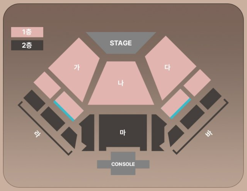 가·나·다 구역 앞열은 무대와 거리가 가까워 최고의 시야를 제공하며, 마 구역은 전체적인 무대 구성이 잘 보이는 안정적인 자리입니다. 측면 라·바 구역은 구조상 일부 시야 제한이 있을 수 있습니다.