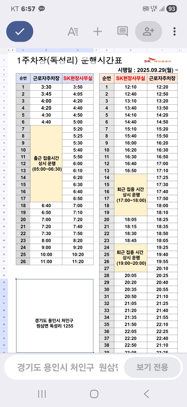 셔틀버스로 이용할 경우, 용인 노선과 안성 노선만 있어서 위 셔틀 버스 시간표를 참고하면 됩니다.