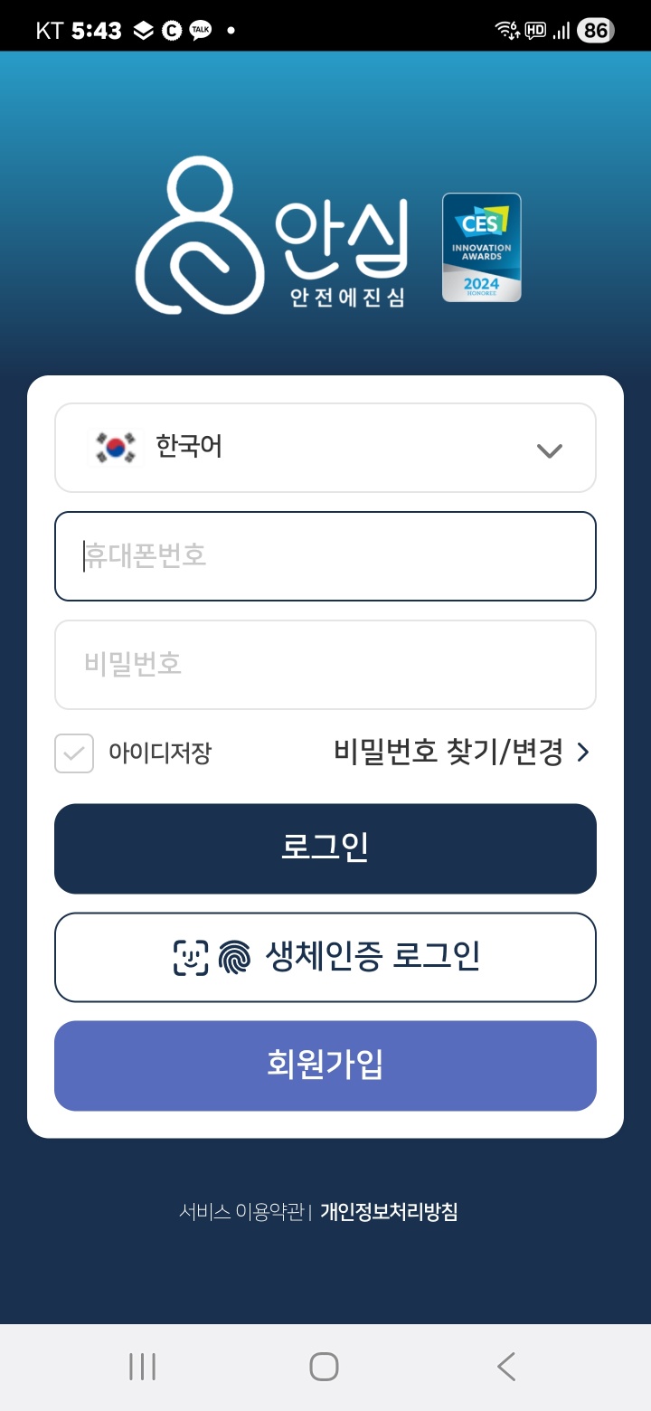 설치하는 앱으로는 '안심'이 있는데 TBM 시 참여 및 활동에 이용합니다.