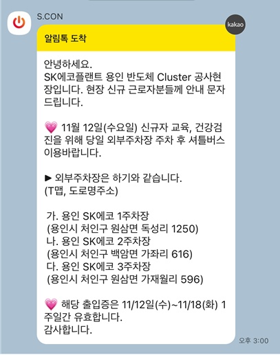 건설인이 SK하이닉스 용인 클러스터 1기 팹에서 일하기로 상담을 하고 서류를 작성했으면 신규채용교육과 검강검진을 받아야 합니다. 신규채용교육 받으려면 신규 교육장으로 가야 하는데 처음 가는 곳이고 더구나 아침 6시반까지 가야 하니까 어려운 일이 아닐 수 없습니다. 개인 차량 또는 SK 셔틀버스로 갈 수 있는데요.