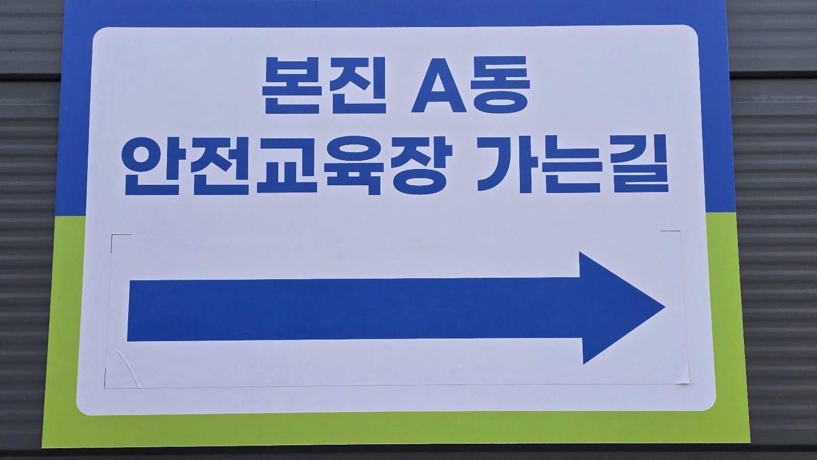 SK하이닉스 용인 클러스터 게이트에 내려서 정면에서 왼쪽을 보면 "본진 A 동 안전교육장 가는 길" 보입니다.